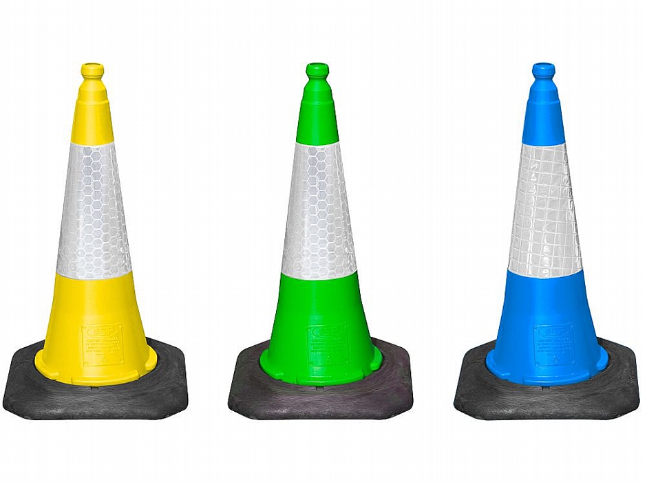 Colours: Yellow, green or blue cone, black base, reflective sleeve.